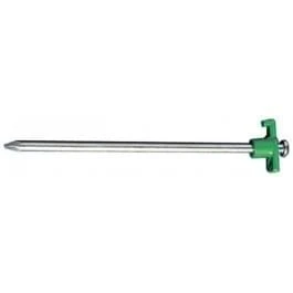 De rotspen met haak van Campking is een stalen spijker met een kunststof haak aan de bovenkant. De stalen rotspen is zeer geschikt voor gebruik op versteende bodem en in de bergen.