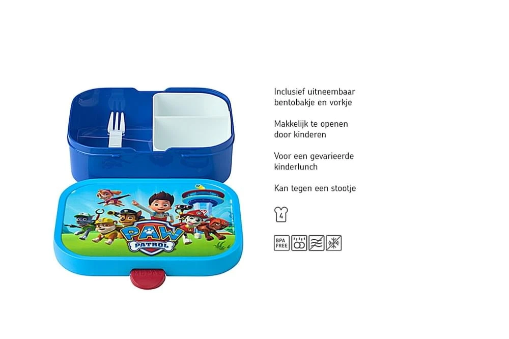Deze Mepal lunchbox Campus is voorzien van een leuke Paw Patrol opdruk. In de broodtrommel passen met gemak 4 boterhammen. Wanneer je van variatie houdt kun je met het meegeleverde bentobakje ook de trommel in verschillende delen opdelen. Zo heb je naast je boterhammen ook plek voor andere lekkere dingen, zoals wat fruit of nootjes. De broodtrommel is BPA-vrij en vaatwasmachinebestendig.