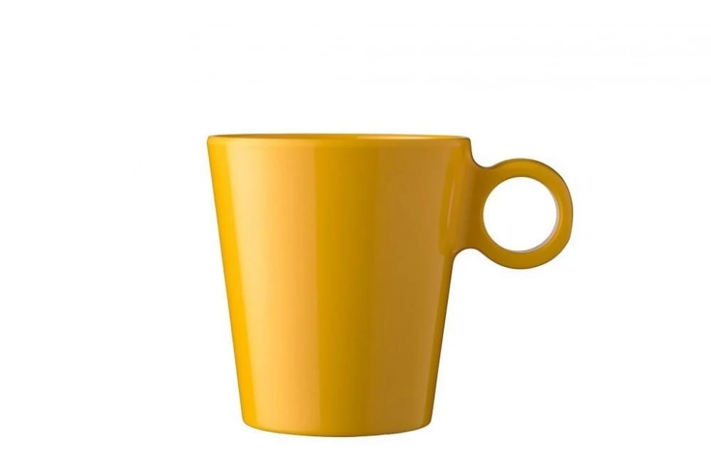 Kleine mok uit de Wave Yellow serie van Mepal. Gemaakt van melamine. Hierdoor is de mok vrijwel onbreekbaar, vaatwasmachinebestendig, licht en kraswerend. Uitermate geschikt voor buiten gebruik.