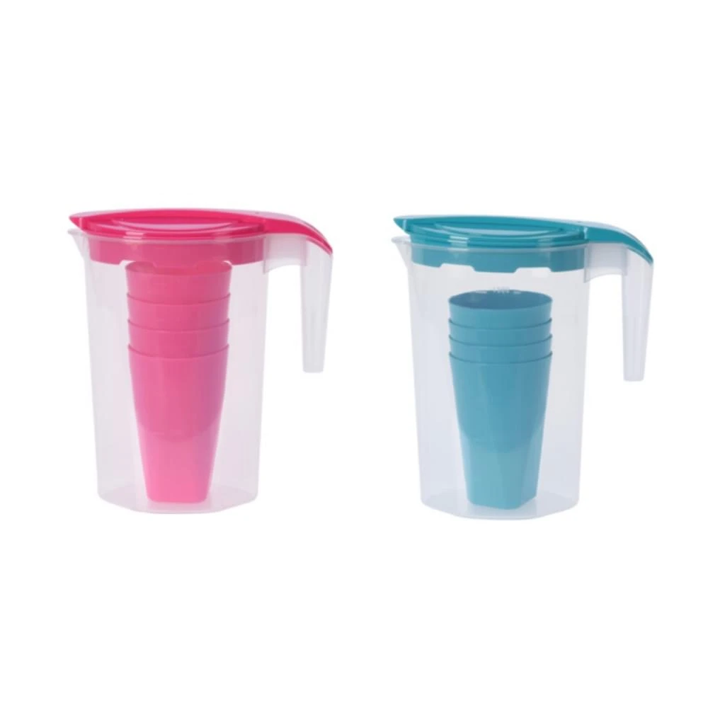 1x Schenkkan met Deksel, 4 x Kunststof Glazen