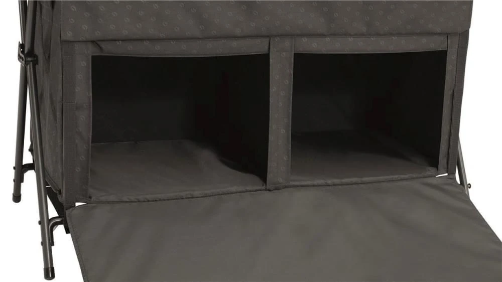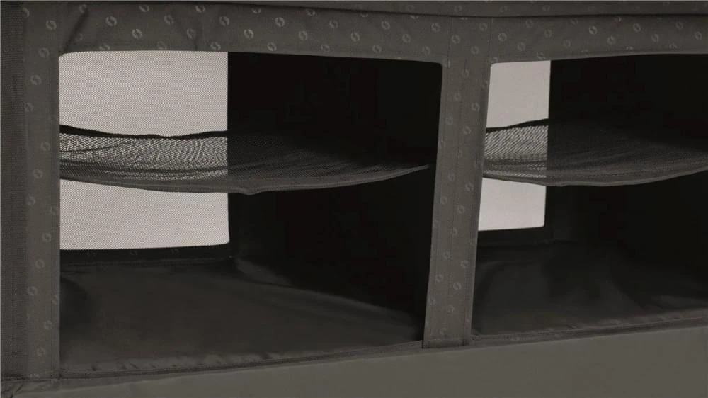 De campingkast is in een mum van tijd opgezet en snel in- en uit te klappen. De mazen in de kast zorgen voor een verbeterde luchtcirculatie. Aan de zijkant van de kast zitten ophanghaken en een opbergvak. De optionele Neat ‘N’ Tidy Organiser kan handig aan de zijkant worden opgehangen voor nog meer gemak. Na gebruik kan de Outwell Campingkast Aruba weer worden opgeborgen in de handige meegeleverde draagtas.
